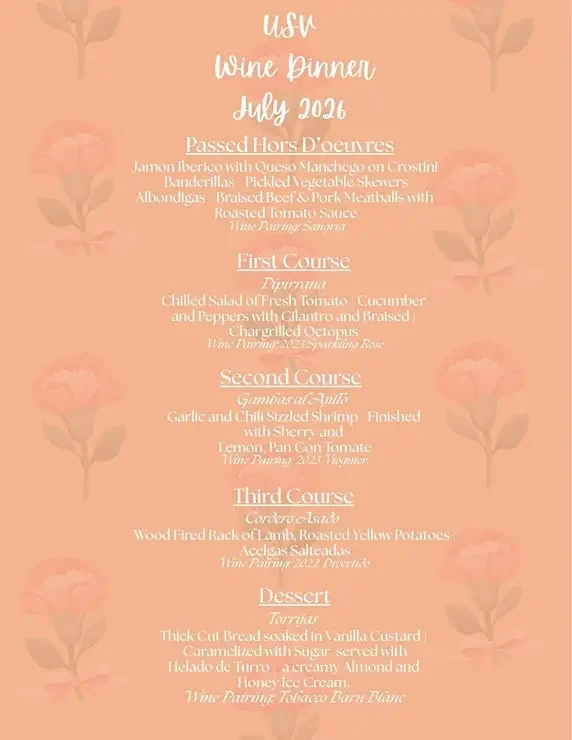 Settle in for an intimate, seated dining experience featuring a four-course prix fixe menu inspired by Spain’s diverse culinary regions. Each course is thoughtfully paired with Upper Shirley wines, creating a unique fusion of Spanish cuisine and Virginia winemaking.